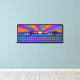 Farbenfroh und dramatisch. Lila und blaue Strahlen, die gegen einen heißen orangen Himmel strahlen und von Meereswellen in verschiedenen Blautönen gerahmt werden. All dies ist auf dutzenden farbenfrohen Friedenszeichen verankert, deren Präsenz an die "Hippie"-Tage der 70er Jahre erinnert. Friedenszeichen waren ein visueller Ansporn für das gesellschaftliche Gewissen, der Hauptfokus der Hippies.