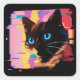 Psychedelic Weirdcore Cat Quadratischer Aufkleber
