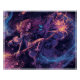 A psychedelic witch on a broomstick design poster let her fly in and park her broom on your wall