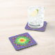 Psychedelischer Zen Mandala Abstrakt Art Untersetzer in Kalkgrün, Rot, lila, Blau und Gelb.
