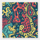 Dieses Kunstwerk präsentiert ein lebendiges und dynamisches abstraktes Muster, gefüllt mit fließenden, Bio Formen und fett kontrastierenden Farben. Die Komposition wird von wirbelnden Formen in Rot, Gelb, aquamarin und Dunkelblau dominiert, die ein Gefühl von Bewegung und Dynamik schaffen. Die komplizierten Details und die abwechslungsreichen Linien verleihen dem Stück eine spielerische, fast hypnotische Qualität, die an die 60er Jahre und die psychedelische 70er erinnert. Das Design ist chaotisch und harmonisch, und zeichne den Betrachter in seine komplexe, immersive Welt.