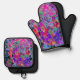 Psychedelisch farbige Rot- und Lila-Blumen Ofenhandschuh & Topflappen-Set