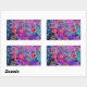 Psychedelisch farbige Rot- und Lila-Blumen Rechteckiger Aufkleber