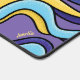 Psychedelisch personalisierte Wellen Schreibtischmatte mit einem Muster, das nahtlos geflieste funky abstrakte Wellen in Gelb, Blau und lila Farben aufweist. Dieses lustige trippige geometrische Design wird in einem Retro-modernen Stil gezeichnet.