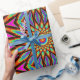 Sehr detaillierte psychedelische Mandala mit bunten Formen und Mustern.