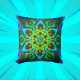 Psychedelisch Kaleidoskop Grün Blau und Orange Kissen