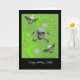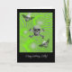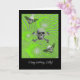 Flügelgeflügelte Schädel auf einem psychedelisch grünen Hintergrund. Kann für jeden Anlass angepasst werden, z.B. Geburtstag. Junge, funky grafische Gestaltung. Fügen Sie einfach Ihre eigene Nachricht hinzu und geben Sie den Namen vorne an.