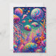 eine lebendige, psychedelische Darstellung des marinen Lebens, mit farbenfrohen Fischen und Quallen inmitten wirbelnder Muster.