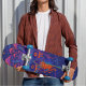 Tauchen Sie ein in eine kosmische Reise mit diesem psychedelischen Skateboarddeck, das einen surrealen, schmelzenden Schädel mit drei Augen aufweist, lebendige Pilze sprießt und technische Farben in eine wirbelnde Galaxie tropft. Dieses trendige Design, das vor neonfarbenen Orangen, Purpeln und Blues in einem sternenförmigen Umfeld verbrannt ist, eignet sich perfekt für Skater, die sich nach kühnem Ausdruck und einem Aussehen aus dieser Welt sehnen. Ein Muss für Liebhaber halluzinogener Kunst, überwältigender Grafik und kosmischem Chaos.