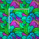 Psychedelisch Retro Muster Blau Grün Aquamarin Lil Stoff