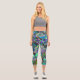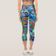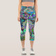 Psychedelische Blume Lila und Kalkgrün Capri Leggings