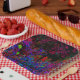 Psychedelische Crimson Red and Black Garden Sunris Pappteller