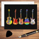 Elektrische, akustische und semiakustische Gitarren schmücken diese funky psychedelische Postkarte in lebendigen Pop-Kunstfarben. Jeder Gitarrist oder Musiker wird Ihnen sagen, dass Sie nie zu vielen Gitarren haben können. Diese bunte Gitarre-Postkarte feiert die Energie und Vielfalt dieses wunderbaren Musikinstruments. Das perfekte Geschenk für Gitarristen, Musiker und Musikliebhaber. Psychedelische Gitarre Pop von Catherine Sweetman