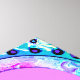 Friedenszeichen mit Punkten und Wirbel in heißen Neontönen in Rosa, Blau, Grün und Gelb, von Justin Allen. Coole niedliche schöne künstlerische Hippie trippy psychedelic Vintag Retro 60er Stil spirituelle inspirierende abstrakte Kunst.