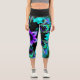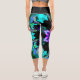 Psychedelische Hippie-Blume Lila Aquamarin und Bla Capri Leggings