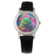 Uhr, Klassische Damenuhr mit schwarzen Lederarmband