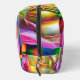 Ein faszinierendes digitales Bild einer Rose, die mit psychedelischer Energie und Regenbogenfarben platzt. Die lebhaften rosa Blütenblätter umwickeln einen goldenen Kern und bilden ein surreales Blumenzentrum.