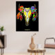 Psychedelische Stammkuh Schädelkuh Blume Federn Poster