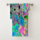 Psychedelische Trippy Lime Green and Blue Flowers Badhandtuch Set