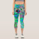 Psychedelische Trippy Lime Green and Blue Flowers Capri Leggings