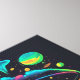 Eine neon UFO Camping Szene im Nachthimmel.