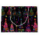 Psychedelische Weihnachtsbaumen auf schwarz Große Geschenktüte