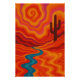 Eine glühende Wüste, in der jede Linie wie eine Hitzewelle umläuft. In der Mitte ist die Sonne hypnotisiert, während ein Kaktus wie ein Totem aufsteht. Die orangefarbenen, fuchsia, rot und türkis verschmelzen in einer intensiven visuellen Sinfonie. Ein pulsierendes Poster, perfekt für kreative und kühne Innenräume.
