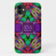 Psychedelischer Batik der psychedelischen Case-Mate-der Abdeckung | des Batik-Monogramm-iPhone4 gefärbten Krawatte bunten inspirierte geometrische Kunst mit tiefpurpurnem Satinband für Monogramminitialen/kundenspezifischen Text