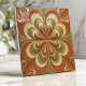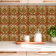 Mit dieser kühnen, in den 1970er Jahren inspirierten Kachel mit psychedelischen Blumenstürzen in wirbelnder Orange, Senfgelb und Avocado-Grün bringen Sie fröhliche Farben in Ihren Raum. Die lebhaften Farben und die trendigen Muster schaffen eine nostalgische Ästhetik, die sich perfekt für Retro-inspirierte Kulissen, akzentuierte Wände oder kreatives Dekor eignet. Seine glänzende Email-Oberfläche verbessert das kühne Design und verleiht Ihrer Küche oder dem Wohnbereich eine Touch trendiger Energie.