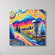 Psychedelischer Golfplatz in den Bergen Leinwanddruck