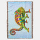 Ursprüngliche feine Grafik in den psychedelischen Farben eines männlichen Panther-Chamäleons durch Künstler Carolyn McFann druckte auf einer stilvollen Throwdecke für alle, die Liebechamäleone und andere Eidechsen.