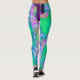 Psychedelischer Retro-Grün- und Hot-Pink-Hibisken Leggings