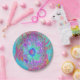 Psychedelischer Retro Rainbow Blue Hibiskus Pappteller