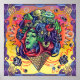 Eine surreale und lebendige Abbildung mit dem Gesicht einer Frau. Ihr Haar ist mit Pilzen, Blume und anderen natürlichen Elementen geschmückt, während ihr Gesicht von wirbelnden Mustern, Augen und Bläschen umgeben ist.