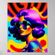 Dieses Kunstwerk aus dem Pop führt Sie mit einer kühlen und stilvollen Drehung in die raue Vergangenheit. Ein faszinierendes, psychedelisches Mädchen, das eine coole Sonnenbrille trägt, Pop vor dem Hintergrund dynamischer US Flagge. Das Retro-Ambiente, kombiniert mit dem modernen Pop-Kunstdesign, macht dieses Stück zu einem Muss für diejenigen, die eine kühne und einzigartige Kunst schätzen.