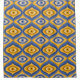 Psychedelischer Duschvorhang mit seltsamen Augenmustern indigoblau und honeycomb gelb Farben. Dieses spaßige eklektische, sonderbare Muster ähnelt aufgrund seiner geometrischen Formen dem zeitgenössischen Stil der Mitte des Jahrhunderts.