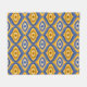 Psychedelische Decke mit seltsamen Augenmustern indigoblau und honeycomb gelb Farben. Dieses spaßige eklektische, sonderbare Muster ähnelt aufgrund seiner geometrischen Formen dem zeitgenössischen Stil der Mitte des Jahrhunderts.