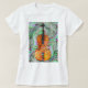 Hölzernes Cello bedeckt mit bunten psychedelischen wirbelnden farbigen Mustern für einen künstlerischen Blick.