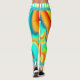Helles, farbenfrohes Fraktal, moderne Leggings, die ein Fraktal Design in Blau, Grün, Rot, Orange und Gelb hervorheben, eine Wasserband und weiße, farbenfrohe Streifen.