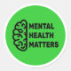 Dieser Themenaufkleber zum Thema psychische Gesundheit mit dem fett gedruckten Text über psychische Probleme und ein halbes Gehirn auf dem spezifischen limiengrünen Hintergrund ist eine gute Wahl, um die Botschaft des Bewusstseins für psychische Gesundheit zu verbreiten, und eine gute Wahl für die psychologische Klinik, das Programm für psychische Gesundheit in der Schule, die Sozialarbeit, die Verfechterin psychischer Krankenhäuser usw. über psychische Gesundheit.