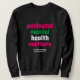 Perinatal Mental Health Matters Sweatshirt, mit ZOLLBARE Bibelverse darunter, um Frauen (und Männer) zu ermutigen, sich zu Wort zu melden. Mit fett rosa, grün und schwarz Typografie. Der Bibelvers kann gelöscht werden, oder Sie können mit Details Ihrer Organisation oder mit Ihrer inspirierenden Botschaft personalisieren. Dieses Sweatshirt für Mütter wäre ideal zum Tragen bei Mutter & Baby Gruppen, Frauenkonferenzen, Kirchengruppen, etc. Matching-Elemente verfügbar.