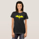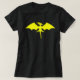 Gelbes Pterodactylfliegen mit den verbreiteten Flügeln, zum eine Superheld-Parodie auf einem schwarzen T-Shirt zu sein.