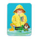 Künstler: Jack Weaver | Mädchen mit Regenmantel steht in Pfützen mit Frosch, Hund und Ente