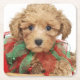 Pudelwelpe, der im Weihnachtskorb sitzt Rechteckiger Pappuntersetzer
