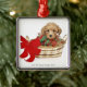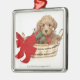 Pudelwelpe, der im Weihnachtskorb sitzt Silbernes Ornament