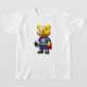 Dies ist ein grafisches Bild eines Pudseebären, der als Superheld mit einem Kap und einem Schild gekleidet ist. Der Bär ist aufrecht mit seinen Armen an seinen Seiten stehend. Der Bär trägt einen blauen Anzug mit roten Stiefeln und Handschuhen. Der Bär hat einen roten Kap und einen Schild mit einem Stern darauf. Der Bär hält ein Megaphon in seiner links Hand.