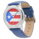 Kinderuhr aus Edelstahl mit blauem Lederarmband