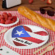 Flag von Puerto Rico in Herzform Ausschnitt mit Text Overlay. Zeigen Sie Ihre Liebe, Ihren Stolz, nehmen Sie an der Revolution teil.