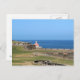 Fotografie der historischen Steinmauer und Strukturen rund um Old San Juan, Puerto Rico mit blauem Himmel und Wasser der Karibik im Hintergrund.