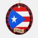 Ornamente: Rustikales Puerto Rico dekoratives Ornament mit puerto-ricanischer Flagge umgeben von roten und schwarzen Büffel karierte Muster - Liebe mein Land, Weihnachtsdekoration, nationale Patrioten / Sportfans